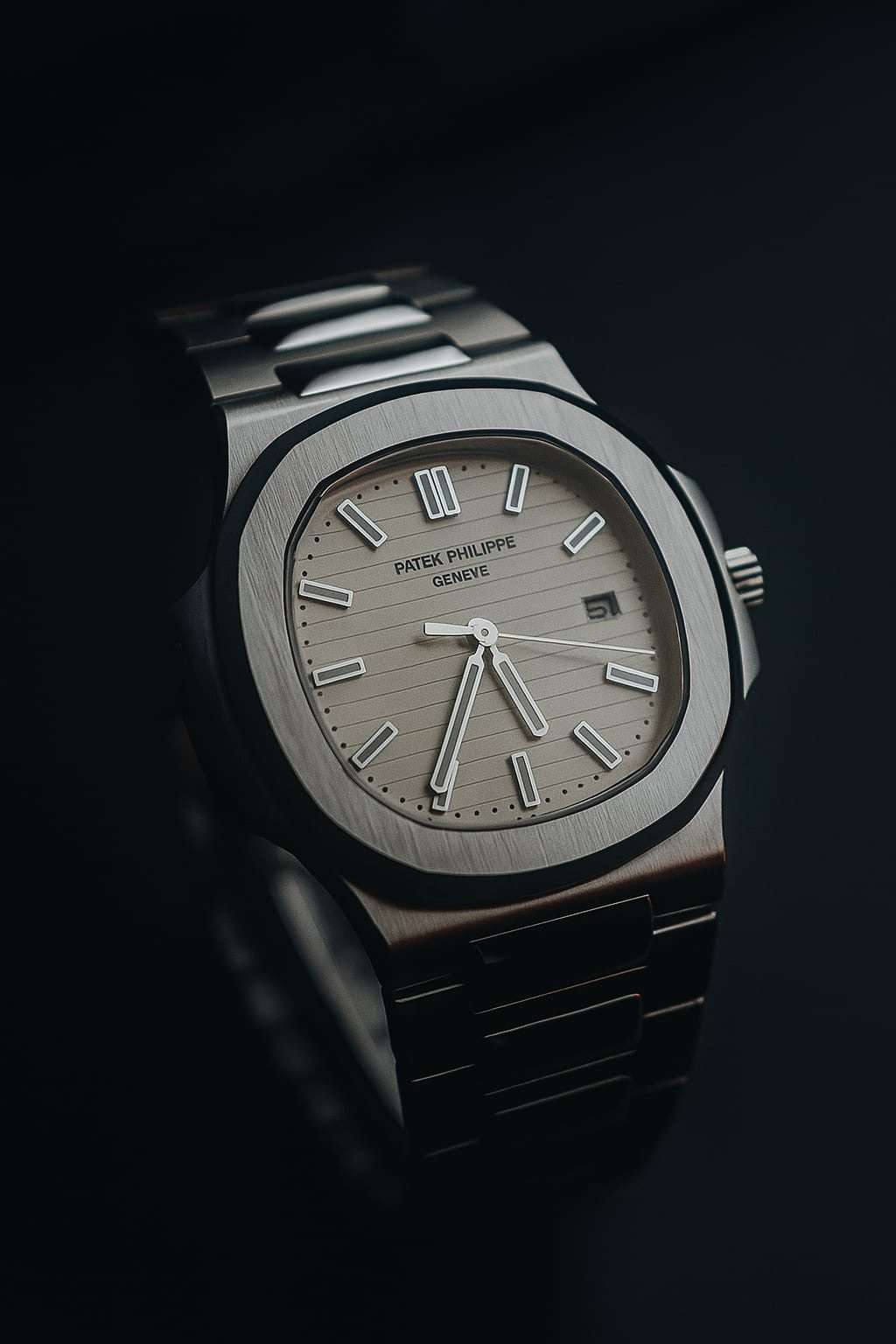 The Patek Philippe Nautilus Stainless Steel with Silver Dial showcases the perfect balance of refined design and Swiss craftsmanship. Its horizontally embossed silver dial, paired with luminous markers and polished hands, offers both clarity and understated elegance. A discreet date display at 3 o’clock adds functional sophistication.